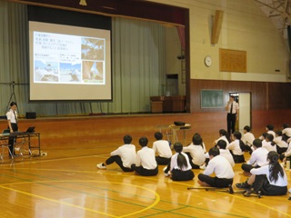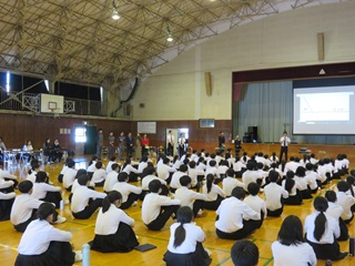 11月6日(木)、学校公開デーの5・6限目に、2年生はキャリア教育の一環として、「JAL航空教室」を実施しました。日本航空より、パイロット、客室乗務員、機体整備、チケット予約販売、運行管理など、飛行機を安全に飛ばすために携わる様々な職種の方を講師としてお招きしました。講師の皆さまには、職種別に仕事の内容をクイズや実演を交えながら、わかりやすく説明していただきました。来年、進路選択を迎える2年生にとって、とても、貴重な経験になったと思います。JALの皆さん、ありがとうございました。