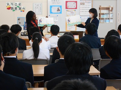 1月22日(木)のお昼休みに、ALTのシーナ先生と図書館司書の方による絵本の読み聞かせがありました。