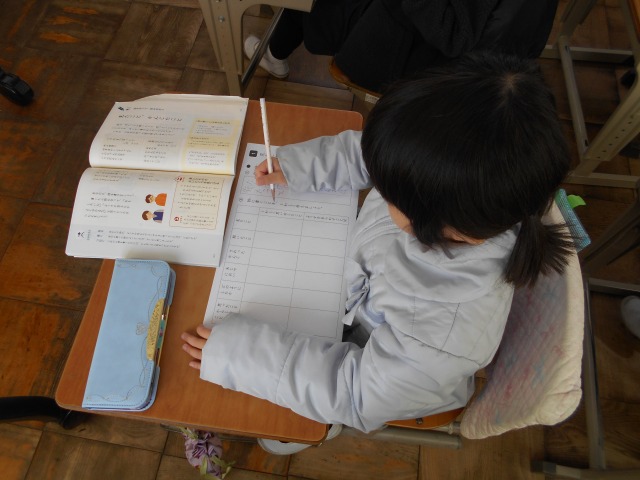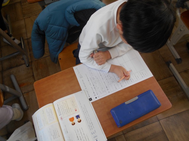 2年生の国語で「詩」の学習をしています。今日(2/4)は、詩を書くための材料集めをしていました。最近、心に残っていることを書き出し、そのことについて「見たこと」「聞いたこと」「触って感じたこと」等について、書けることだけ書くようにしていました。ある子どもは、ラーメン屋に行った時のことを思い出し、自身は醤油ラーメンを食べたけれど、厨房から臭いにおい(とんこつをこの子は臭いと感じたそうです)がしてきたので鼻をつまんで食べたこと、その時にぐらついてた歯が抜けたことを書いていました。これらのことが、「詩」にどのように表現されるのかが楽しみです。