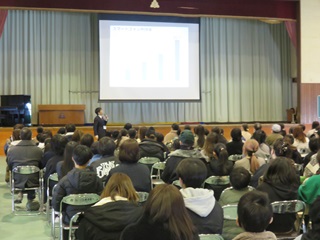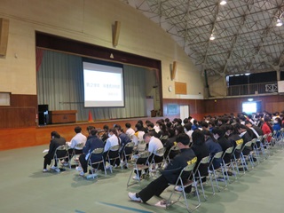 2月12日(木)、2年生の修学旅行・進路保護者説明会を開催しました。まず、修学旅行の概要が説明されました。東京・千葉方面への2泊3日の行程となっており、安全を最優先に考え、子どもたちの思い出に残る活動となるよう準備を進めていきます。次に進路選択についての説明です。ほとんどの生徒が進学を希望しており、担当の話を真剣な表情で聞いていました。