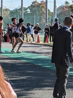 昨日、四日市中央緑地公園にて県駅伝大会が行われ、本校から男子が出場しました。汗ばむくらいの秋晴れのもと、選手たちは自分の力を発揮することができました。全出場チーム中の半分より上位の21位という結果でした。お疲れさまでした。走り終えた選手たちはみんないい表情でした!