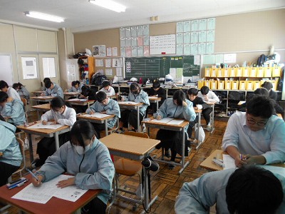 昨日4日(火)の午後から3年生の進路説明会が行われました。近隣の私立高校と鳥羽商船高専が来校し、説明をしていただきました。その後は公立高校出願についての事務説明となりました。Web出願の制度が始まって数年がたち、不具合等も改善されてきました。本校でも本年度よりクレジットカードによる受験料の支払いを行うこととなりますが、便利になる反面、ほんの少しのミスでも申請が不可能になる厳しさがあります。慎重に慎重を重ねて、よく説明を理解して申請を行うようにしてください。