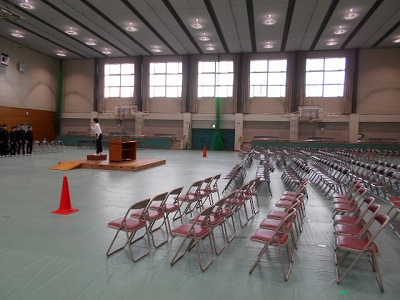 いよいよ卒業式まで一週間となりました。本格的な練習の開始を前に、2年生が式場づくりに励んでくれました。朝からすでに陸上部やバスケ部の生徒がシートをひいてくれて、その後椅子を並べてくれました。この会場を作ることで、自分たちが次の学校のリーダーとなることを実感していくものなのです。