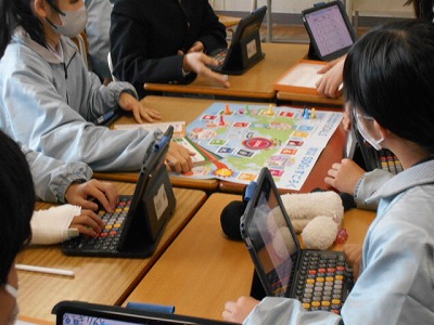 御薗中学校区健全育成協議会でSDG'Sと防災を学べるすごろくを購入してもらいました。非常にわかりやすく学べる教材になっています。本日1年生に取り組んでもらいました。解答用紙がついているのですが、タブレットを用いて解答すると、何度も利用できます。ナイス工夫です!