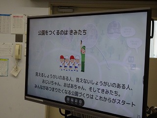 9月26日(金)、5年生は総合的な学習の時間に、東京からインクルーシブ遊具メーカーの方をお招きし、お話を伺いました。