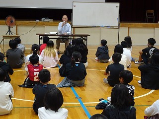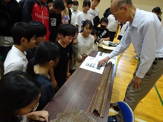 10月2日(木)、6年生は平和学習として山田奉行所記念館の館長さんをお招きし、戦時中の伊勢地域の状況について学びました。