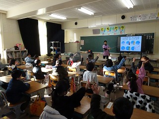 1月16日(金)、児童会が企画・運営を担当した「あけましておめでとう集会」が行われました。