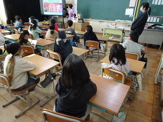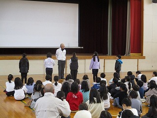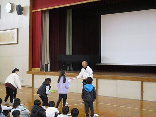 2年生の生活科では、一年間を通して地域の野菜づくりの名人、大西さんにお世話になっています。 1月28日、これまで優しく、熱心に野菜の育て方を教えてくださった大西さんをお招きし、「感謝の会」を開きました。