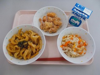今日は伊勢市の郷土料理である伊勢うどんでした。伊勢うどんは江戸時代から伊勢で食べられており、お伊勢参りに来た旅人に、消化がよく、疲れた体にやさしい伊勢うどんがふるまわれていたそうです。給食はたれにもこだわり、煮干し、昆布、かつお節からだしをとって手作りしています。また、伊勢うどんに欠かすことができない青ねぎは、「ねぎらいねぎ」という伊勢市の特産品です。地域の味を楽しみ、大切にしていきましょう。