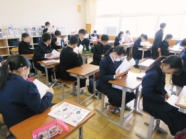 8時25分から10分間の朝読書(1年)・朝学習(2年)