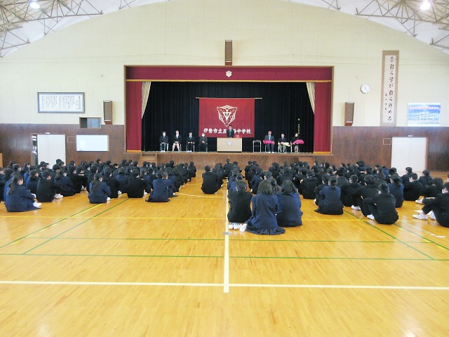 4月からの新しい年度、皆さんがリーダーシップを発揮し、1年生から3年生までの生徒全員が力を合わせて、より良い五十鈴中学校を創っていってもらいたいと思います。