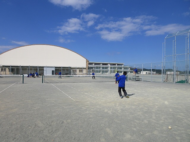 多くの部活動が午前中に活動を終え、午後からは、男子のソフトテニス部が練習を行いました。