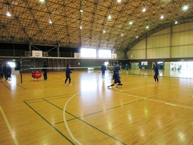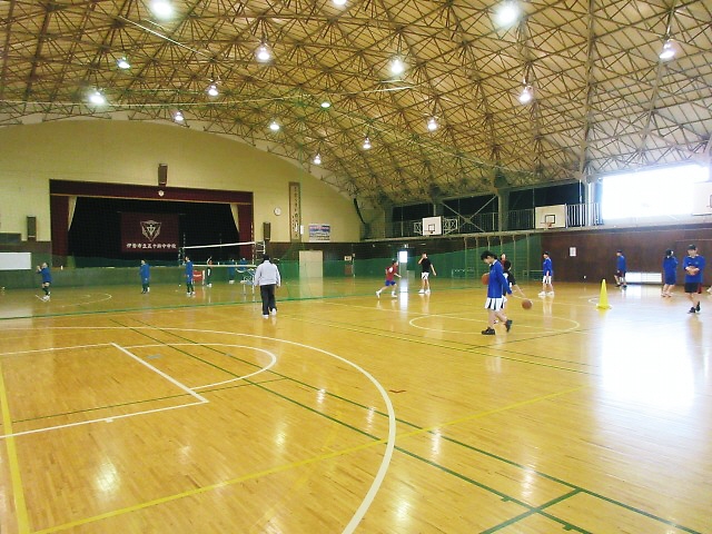 体育館では、バスケット部とバレーボール部が練習を行いました。