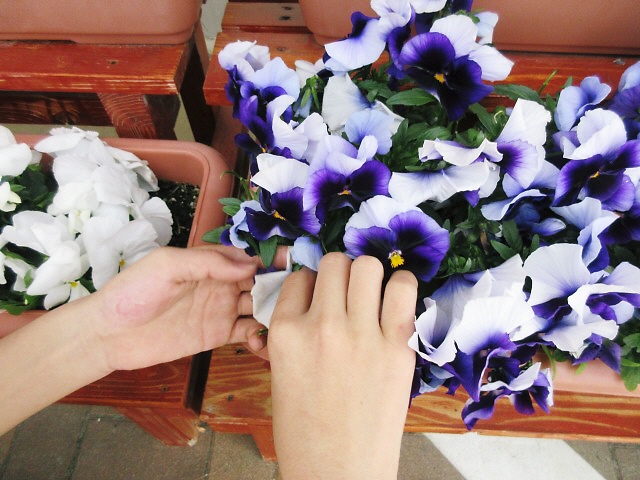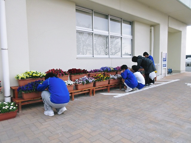 総合文化部の生徒たちは、午前中の活動の中で、プランターで育てているパンジーの花の手入れをしました。
