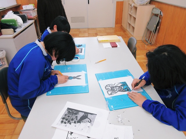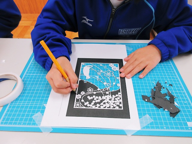 総合文化部の生徒たちが、今日の部活動で切り絵をスタートさせました。