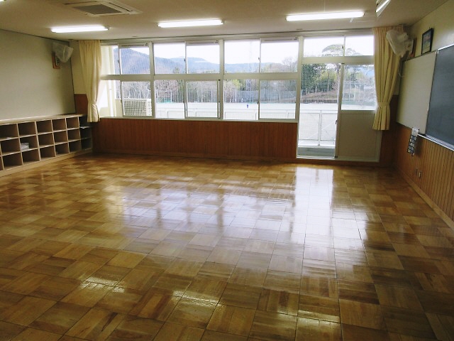 放課後、各クラスの美化委員が、教室の床にワックスをかけました。