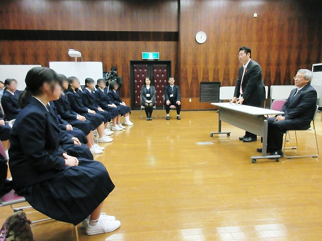 市長の鈴木健一様、教育長の北村陽様をはじめ、教育委員会事務局の皆様など、たくさんの方々から激励を受けました。