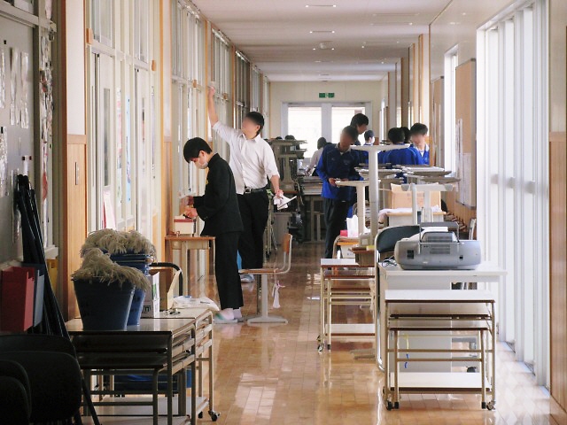生徒たちは役割を分担し、午後からも準備に懸命に取り組みました。