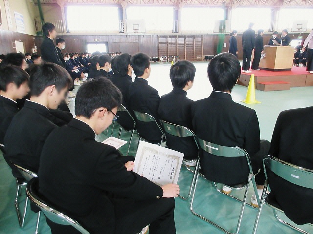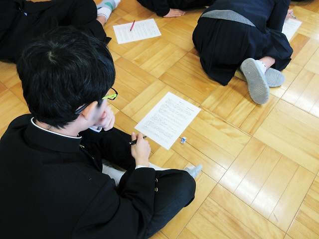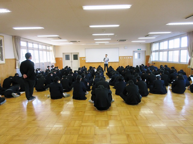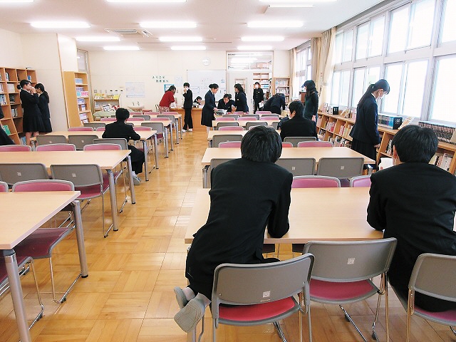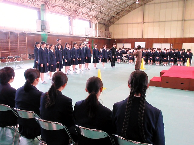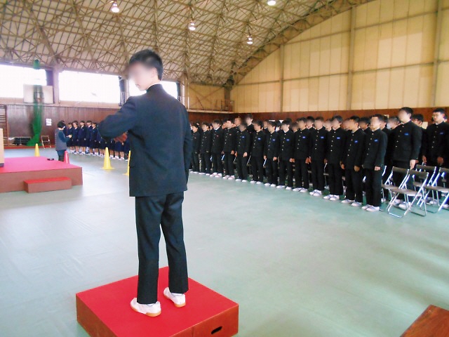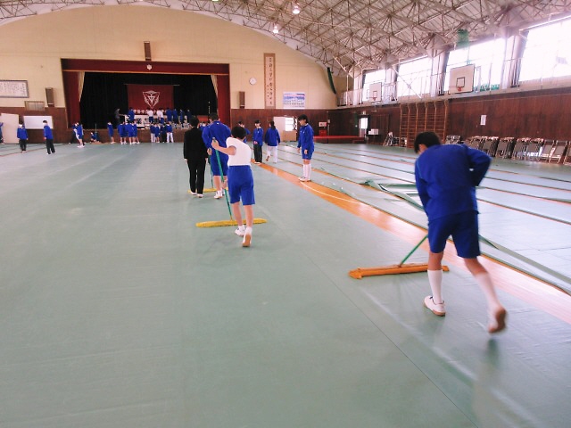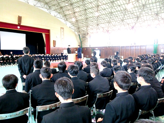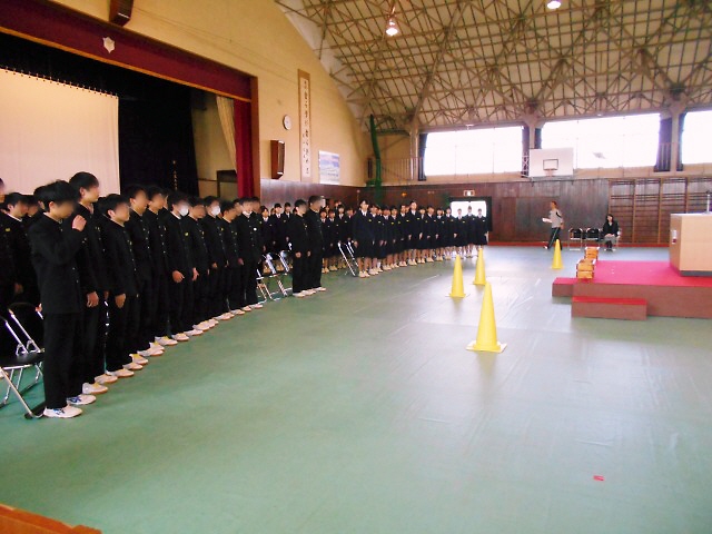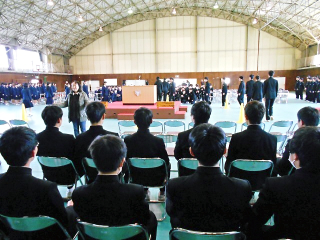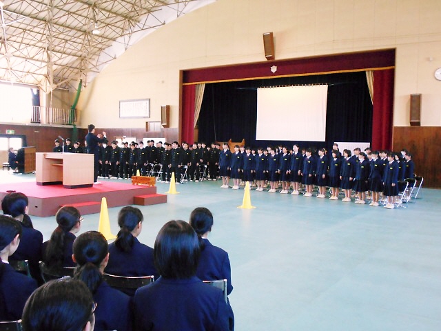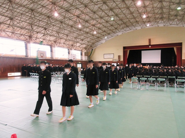 卒業式の予行練習を終え、2年生の生徒たちが体育館に集まりました。