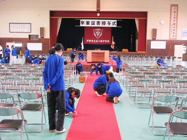◇卒業生が歩く花道への赤い毛せんの設置 ………
