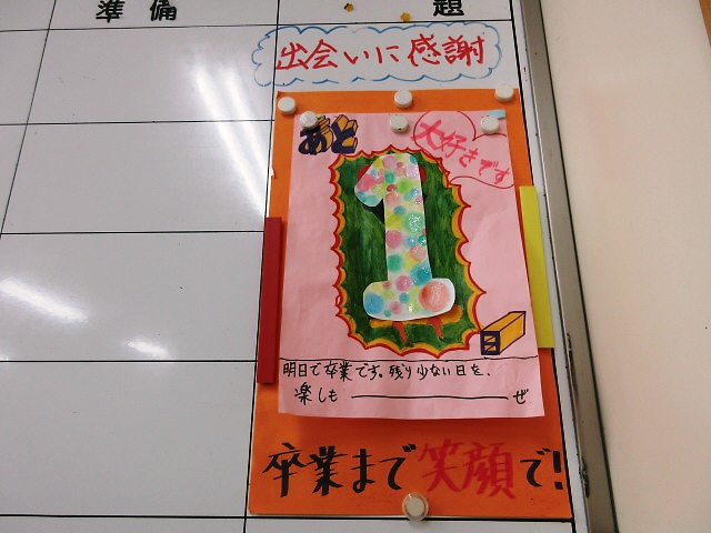 卒業式までのカウントダウンは、いよいよ1日となりました。