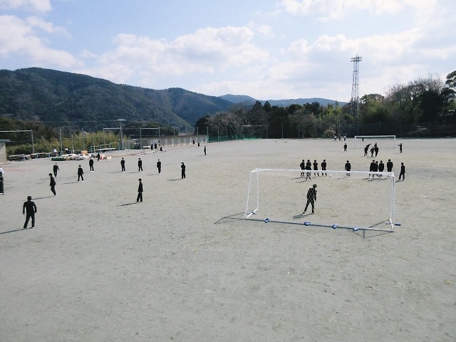 春を感じさせる暖かな朝、男子は運動場でサッカー、女子は体育館でバスケットボールとバドミントンを楽しみました。