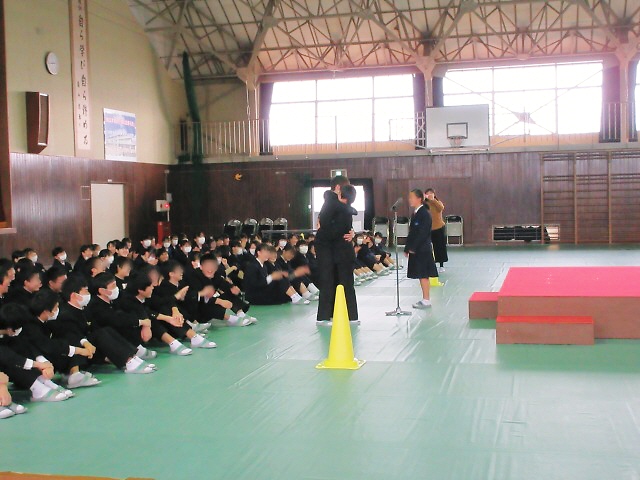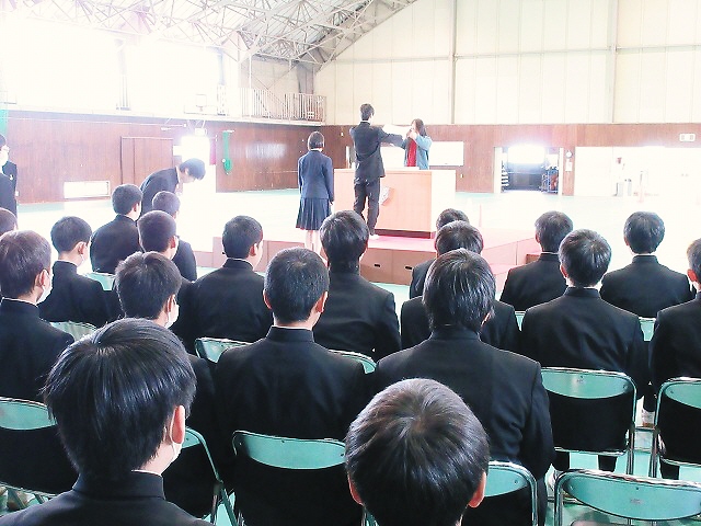 卒業式を4日後に控え、3年生を送る会が午後の体育館で開催されました。