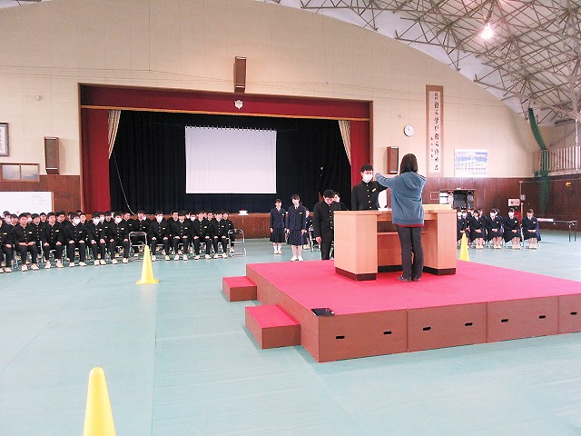司会、進行は、2年生の学年生徒会の生徒たちで、後期の生徒会本部役員、各クラスの級長・副級長が務めました。