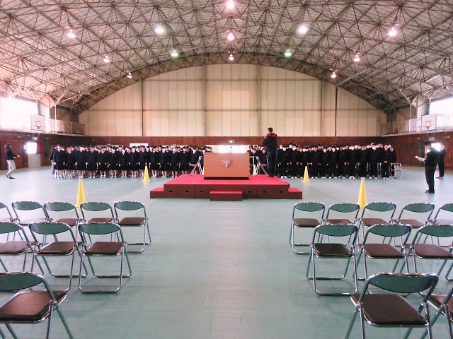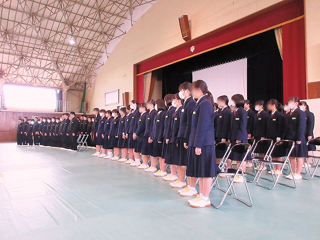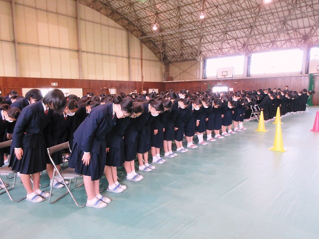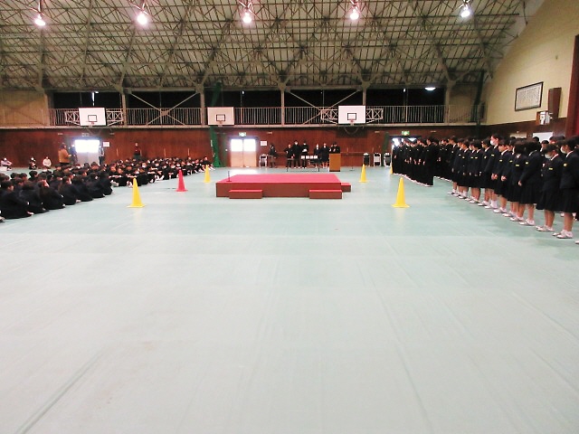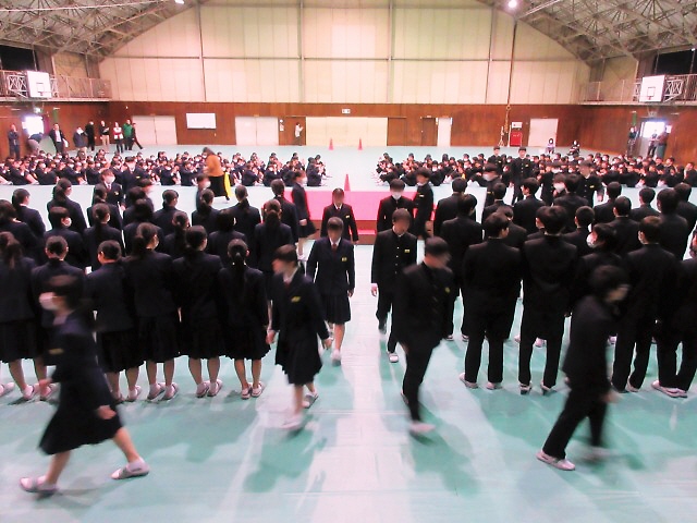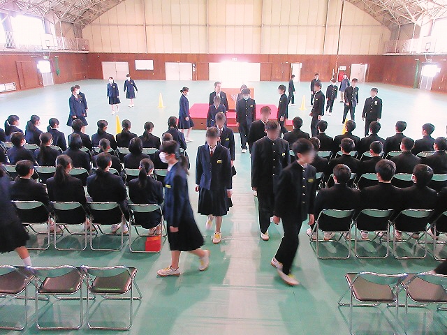 1・2年生の生徒たちは、5限目が始まる少し前に体育館に集まり、列を整えて待機。