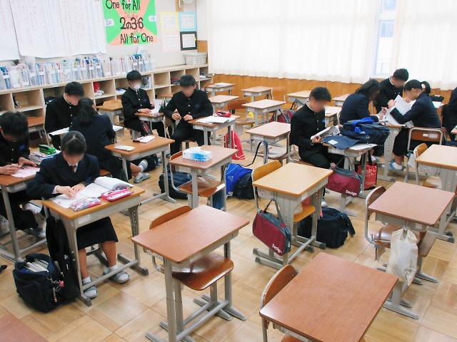 部活動の朝練習がなく、いつもより少しゆっくりと登校した1・2年生の生徒たちは、教室に入るとすぐに、時間を惜しんでテスト勉強に取り組みました。