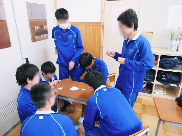 3年生の教室に行くと、1つの机を数人の男子生徒が囲み、楽しそうに遊んでいました。