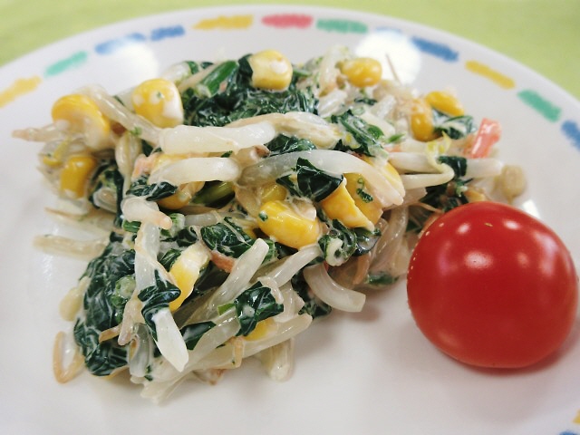 ◇地元食材を使った今日の献立は、「にじますの塩から揚げ」「白菜のおかか和え」「めかぶ汁」です。