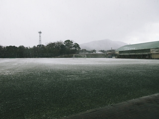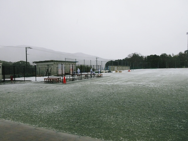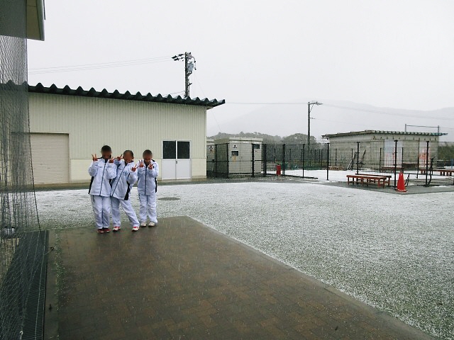そして、11時過ぎから、空から白いものが降り出し、運動場も、体育館の屋根も、周りの山々も、辺り一面が白い世界に変わっていきました。