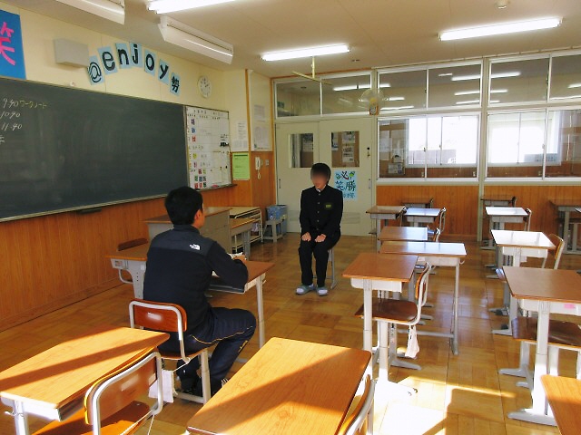 静かになった3年生の教室では、私立高校、高等専門学校の推薦入試を受ける生徒たちが、面接練習に取り組みました。