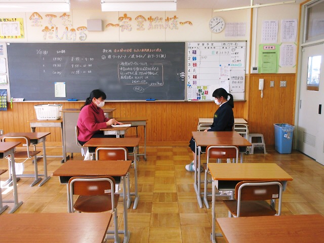国語、社会、数学、理科、英語のテストの後、6限目は授業を行いました。