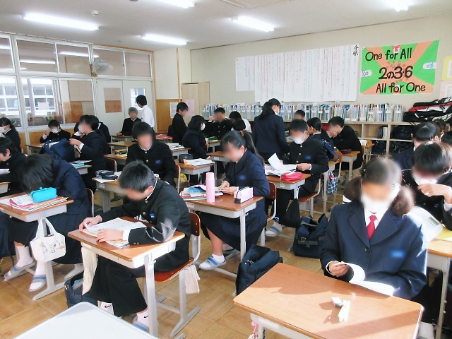 3年生は、学年末テストの3日目、最終日を迎えました。