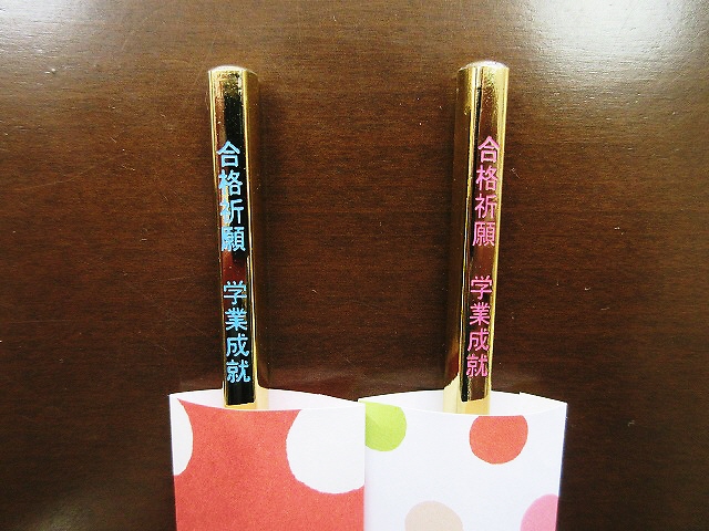 鉛筆には「合格祈願 学業成就」という文字が刻まれており、だるまの絵柄の手作りの袋に入れて手渡されました。