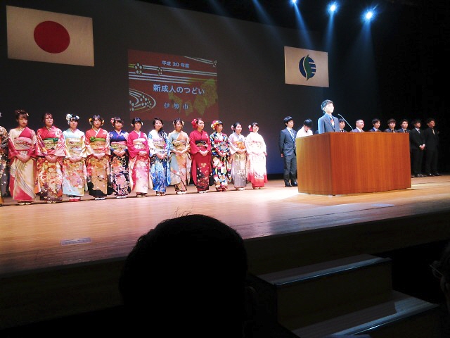 平成30年度新成人のつどいが、シンフォニアテクノロジー響ホール伊勢(伊勢市観光文化会館)で開催されました。