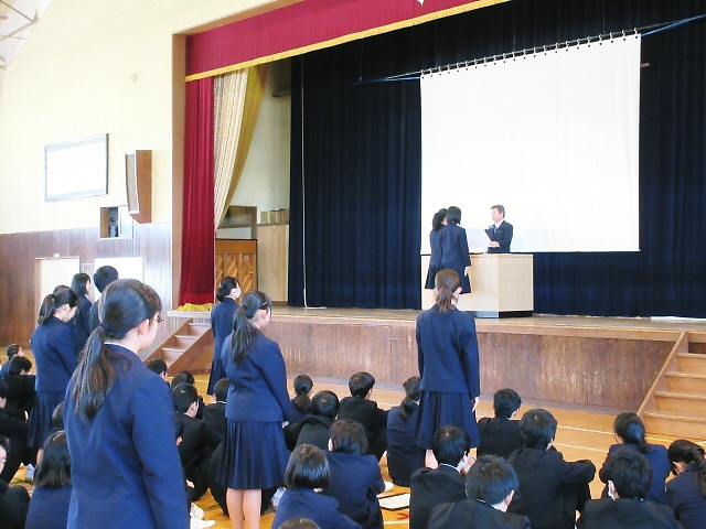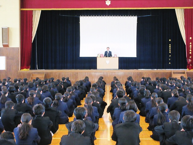 生徒指導担当の河村先生から、1年間の振り返りと冬休みの生活について話がありました。