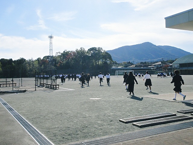 外に出てからは駆け足で校舎を離れ運動場の中央に整列しました。