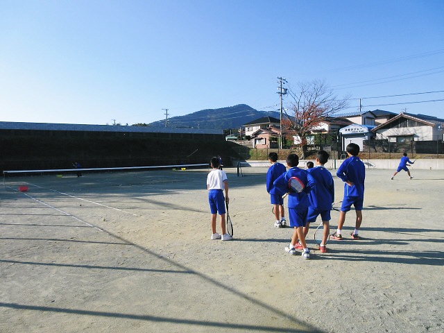 男子テニス部は、2箇所のコート全てを使っての練習。