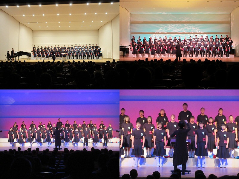 それぞれの小学校の体育館には、各小学校の全校児童とともに保護者の皆様や地域の皆様がたくさん集まり、全国レベルの合唱を楽しみました。