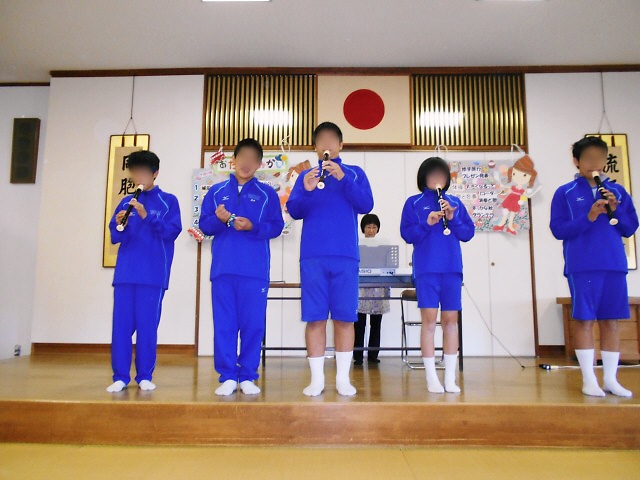 本校は、「エーデルワイス」「星の世界」のリコーダー演奏と「空も飛べるはず」の合唱を披露しました。