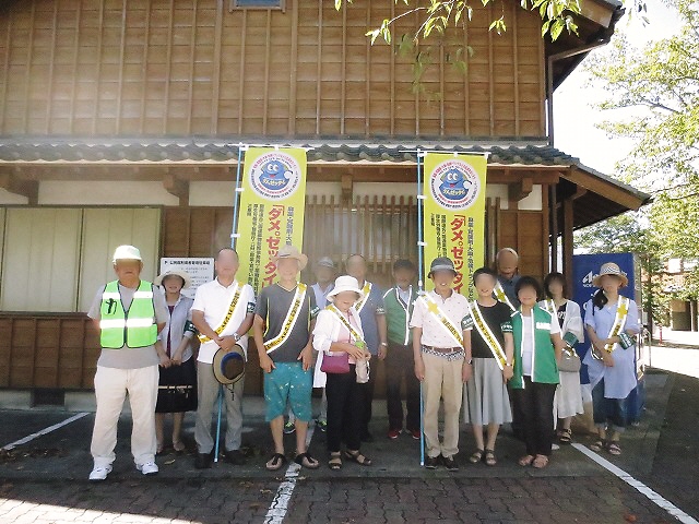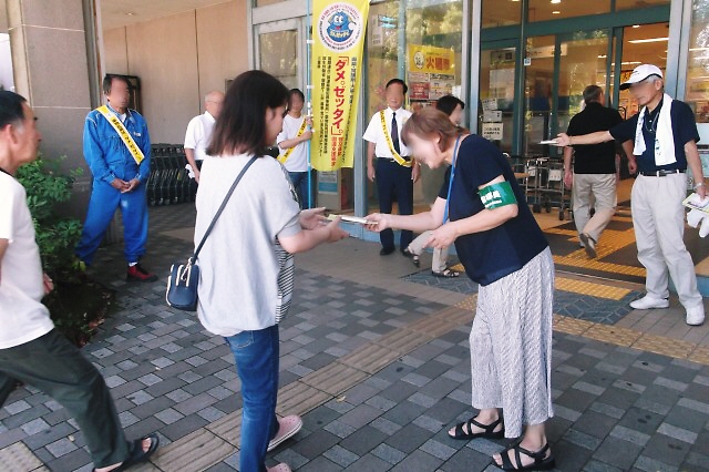 そして、青少年健全育成協議会の地域の皆さんが、腕章やタスキを身に付けて、三重県作成の『ダメ。ゼッタイ。』のリーフレットやティッシュを配り、薬物乱用防止を呼びかけました。
