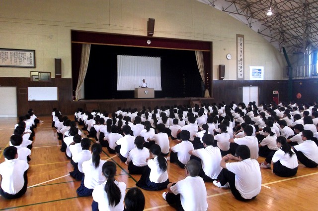 生徒たちは、目線を河村先生に向け、真剣な表情で話を聞きました。