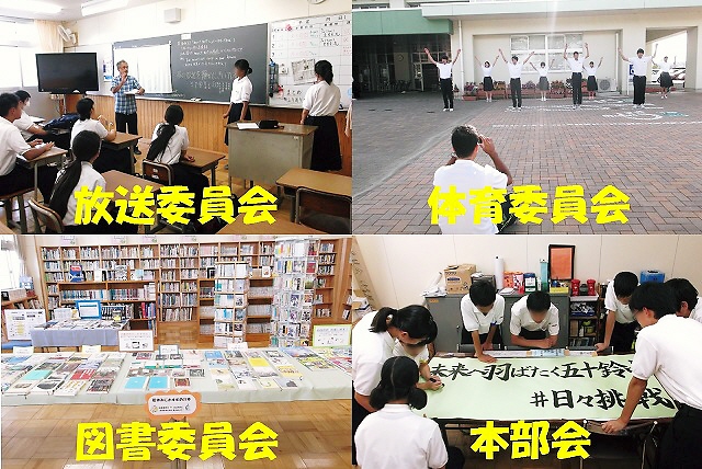 ・今日は、広島平和記念式典や子ども未来会議などの夏の取組、体育祭での生徒会種目、あいさつ運動などの提案があります。