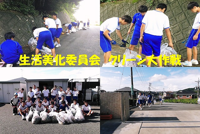 生活美化委員会は、先月の取組の反省や今月の重点課題などについて話し合った後、クリーン大作戦を実施。