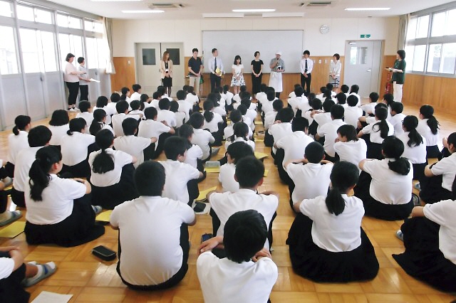 生徒たちは、う歯が及ぼす学習面や生活面への影響について、真剣に先生の説明を聞き、考えています。