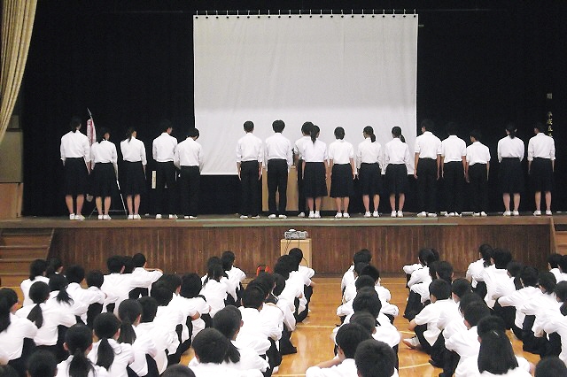 団員は、生徒会本部役員、各クラスの級長・副級長に加えて、全校生徒から希望者を募りました。