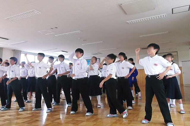 お昼休みの多目的ルームでは、連日、連合陸上競技大会に向けた応援団練習が行われています。